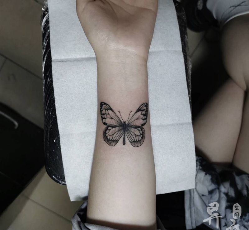 当前位置: 首页 >陕西省安康市纹身店-异度空间纹身馆纹身图案>蝴蝶纹身图片_手臂腿部点刺小清新纹身图案