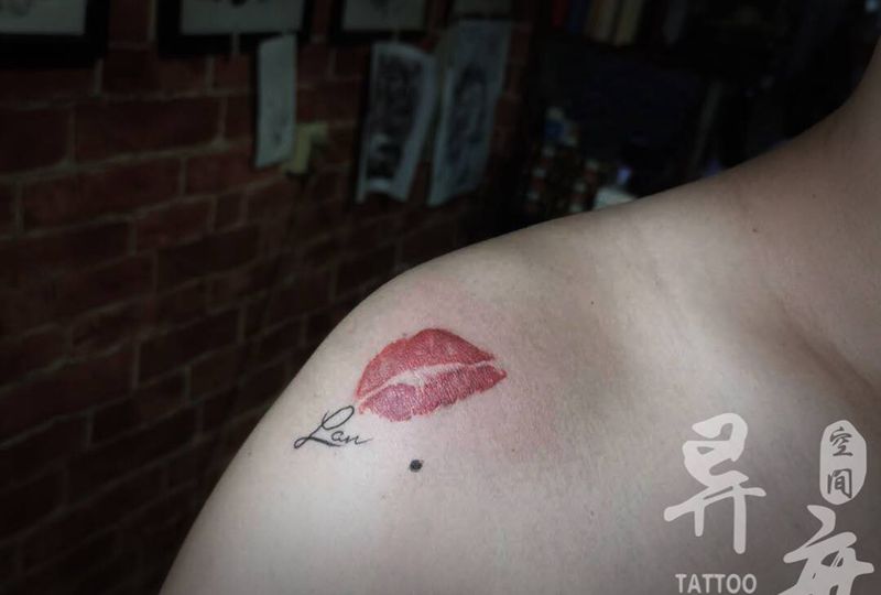 当前位置: 首页 >陕西省安康市纹身店-异度空间纹身馆纹身图案>红唇纹身图片_肩部胸部图腾水彩口红印纹身图案