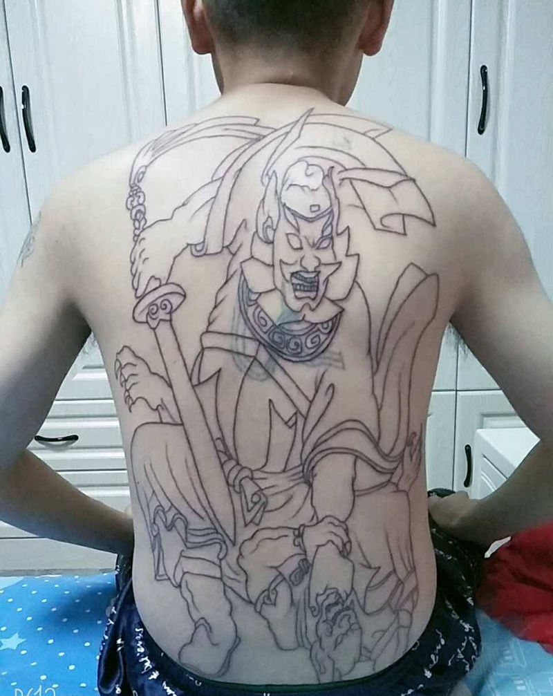 当前位置: 首页 >甘肃省兰州市纹身店-恒艺刺青-TATTOO纹身图案>钟馗遮盖修改纹身图片_背部新传统纹身图案