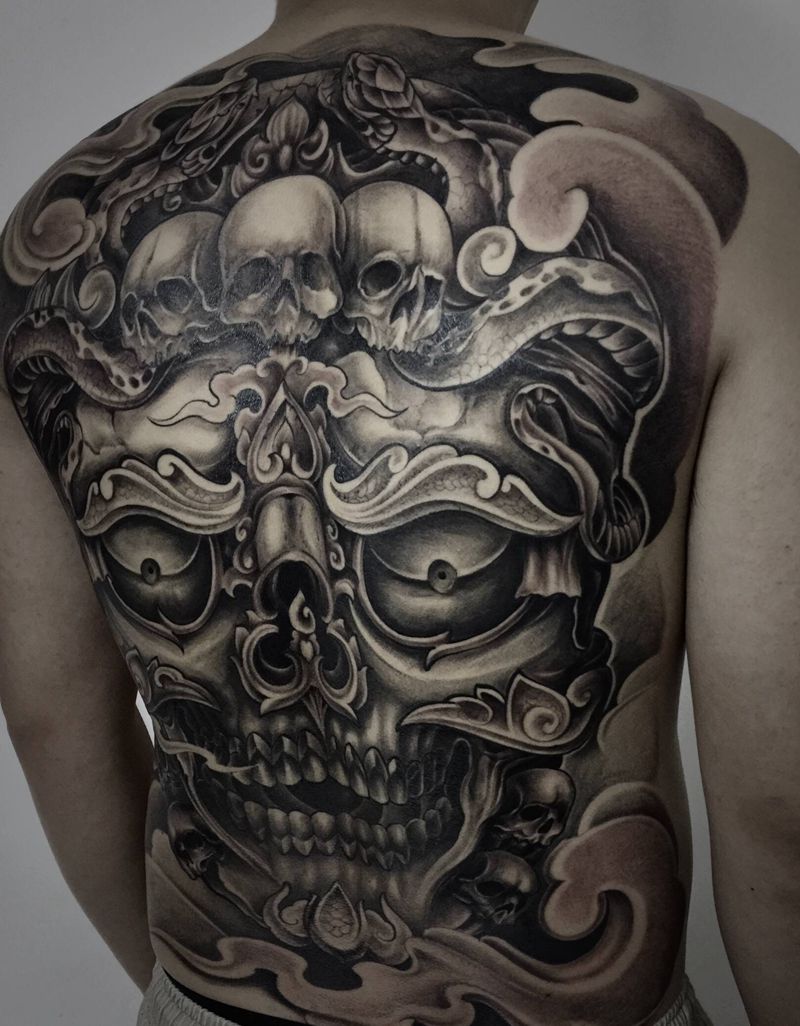黑灰满背纹身图案