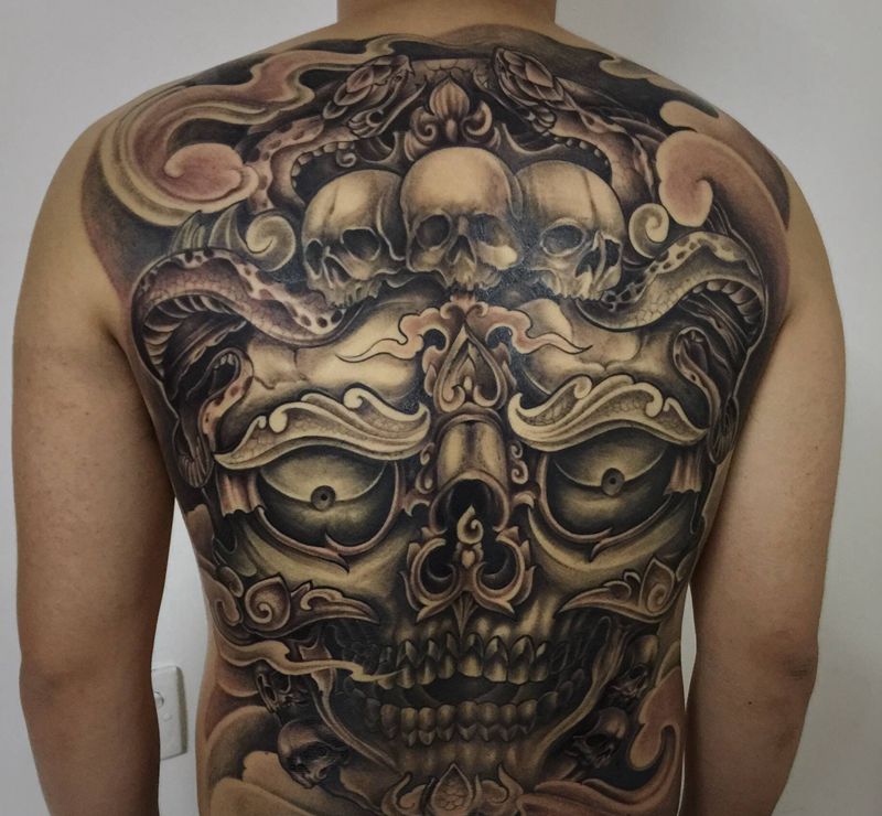 当前位置: 首页 >甘肃省兰州市纹身店-恒艺刺青-TATTOO纹身图案>嘎巴拉纹身图片_背部新传统纹身图案