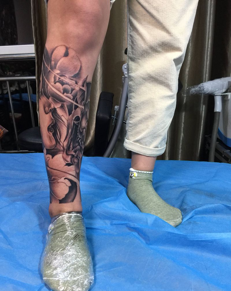 • T网红王老大花腿龙纹身图片_腿部新传统纹身图案