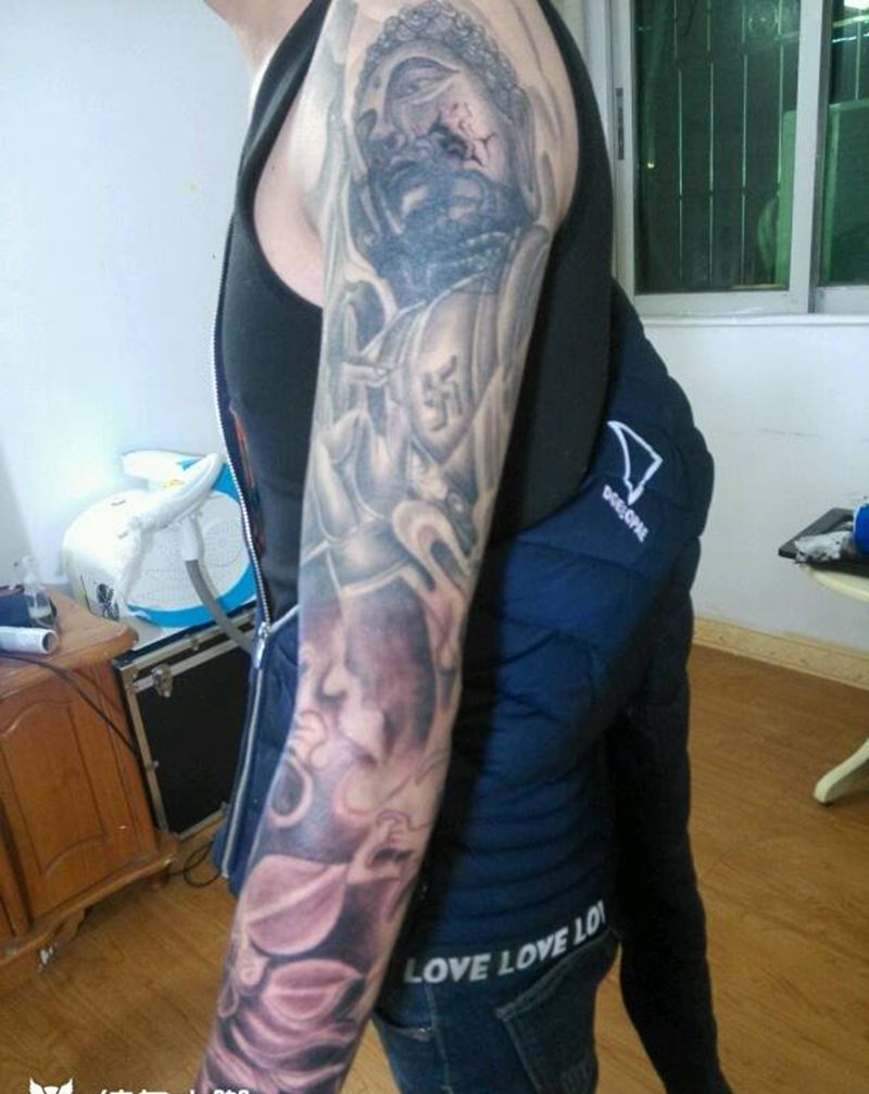 当前位置: 首页 >甘肃省兰州市纹身店-恒艺刺青-TATTOO纹身图案>佛像莲花花臂纹身图片_手部传统人物成品纹身图案
