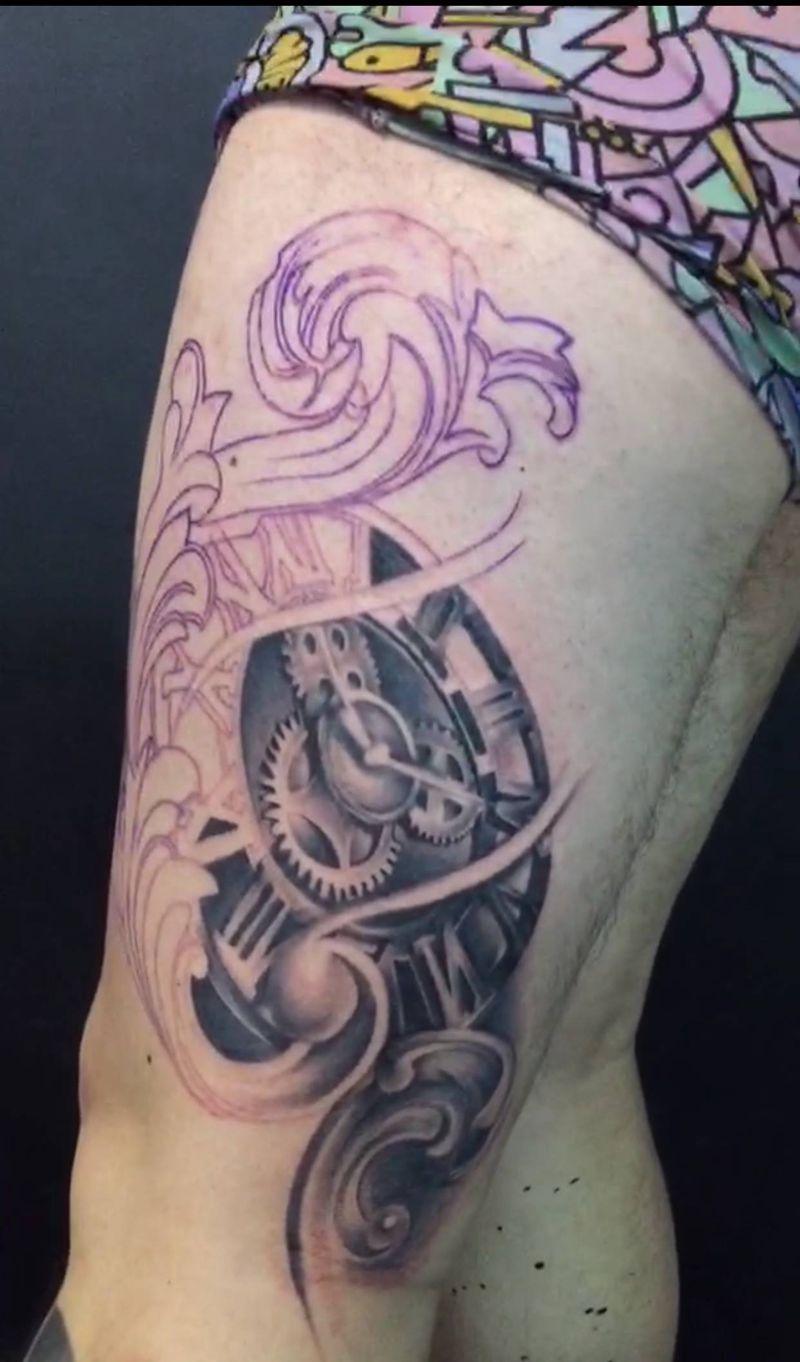 当前位置: 首页 >甘肃省兰州市纹身店-恒艺刺青-TATTOO纹身图案>时钟纹身图片_腿部纹身图案