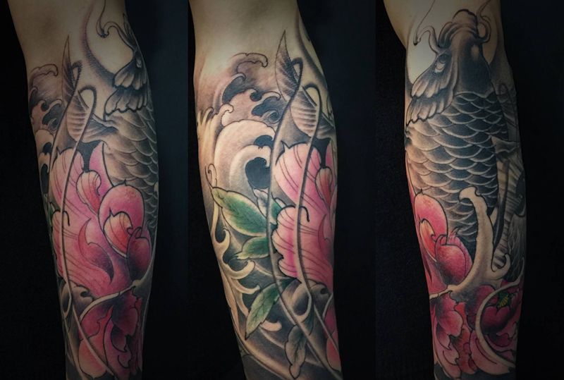 当前位置: 首页 >甘肃省兰州市纹身店-恒艺刺青-TATTOO纹身图案>鲤鱼牡丹包小臂纹身图片_手臂纹身图案