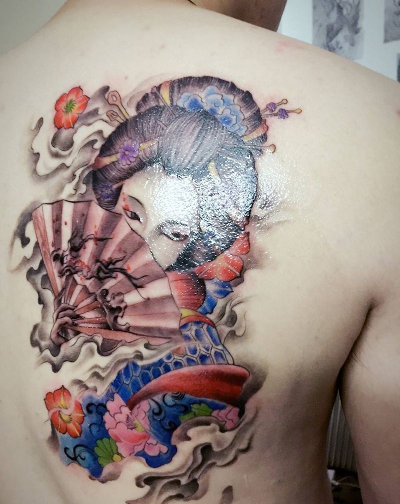当前位置: 首页 >甘肃省兰州市纹身店-恒艺刺青-TATTOO纹身图案>艺妓上色纹身图片