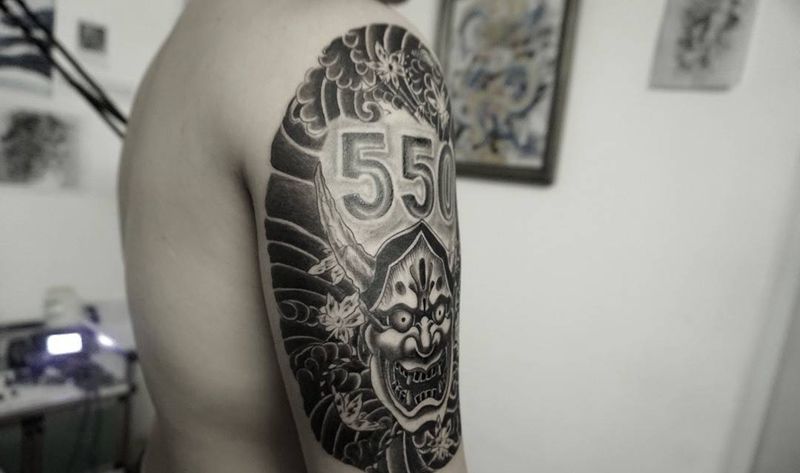 当前位置: 首页 >甘肃省兰州市纹身店-恒艺刺青-TATTOO纹身图案>传统般若包大臂纹身图片