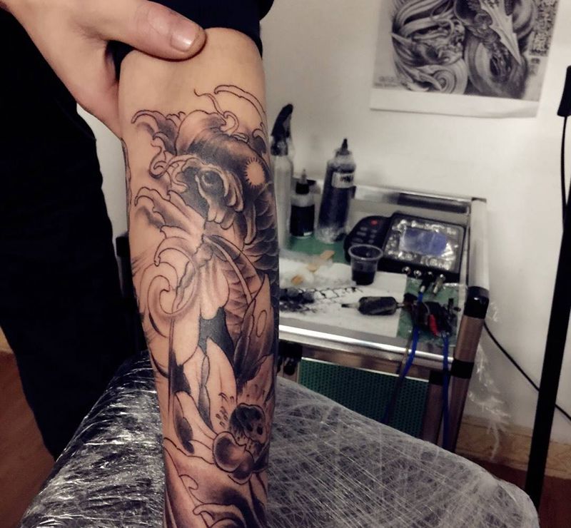 当前位置: 首页 >甘肃省兰州市纹身店-恒艺刺青-TATTOO纹身图案>鲤鱼般若包小臂纹身图片