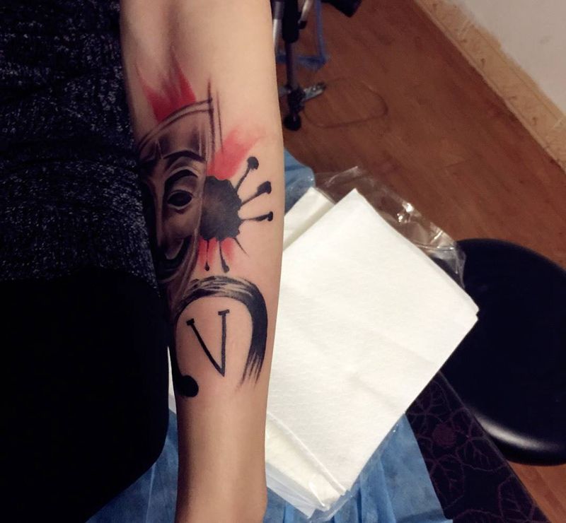 当前位置: 首页 >甘肃省兰州市纹身店-恒艺刺青-TATTOO纹身图案>V字仇杀队纹身图片