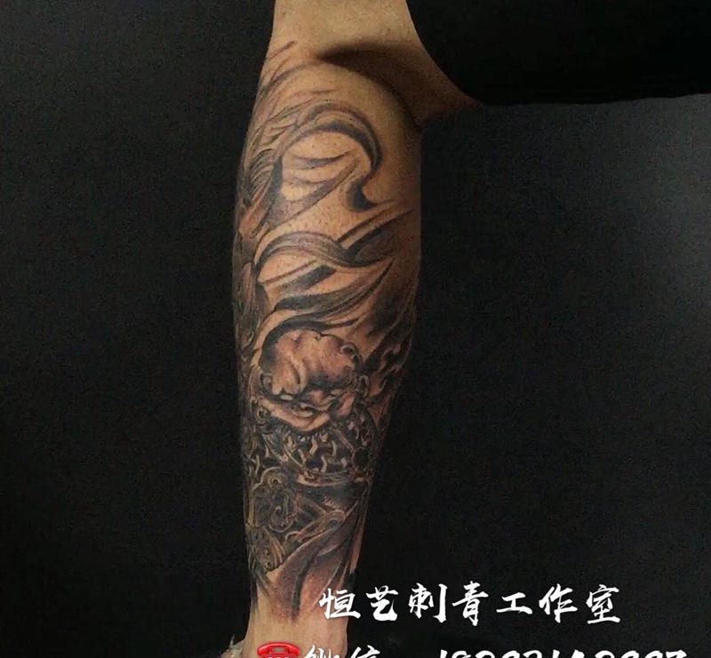 当前位置: 首页 >甘肃省兰州市纹身店-恒艺刺青-TATTOO纹身图案>孙悟空包小腿纹身图片