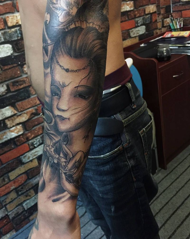 当前位置: 首页 >甘肃省兰州市纹身店-恒艺刺青-TATTOO纹身图案>般若艺妓花臂纹身图片