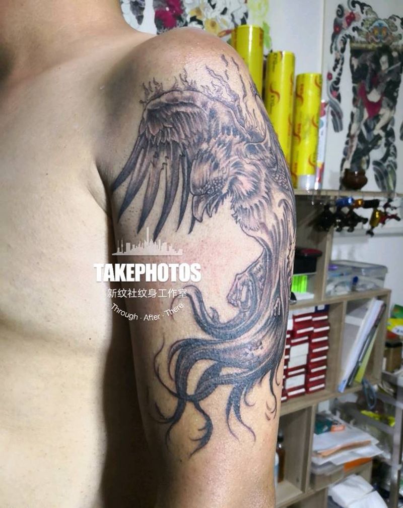 当前位置: 首页 >甘肃省兰州市纹身店-新纹社工作室纹身图案>火凤凰纹身图片
