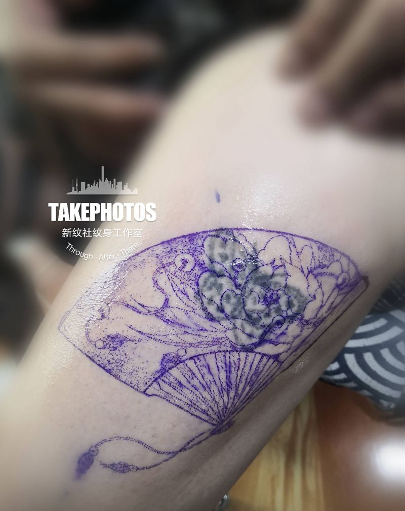 当前位置: 首页 >甘肃省兰州市纹身店-新纹社工作室纹身图案>扇子纹身图片_腿部新传统水彩遮盖纹身图案