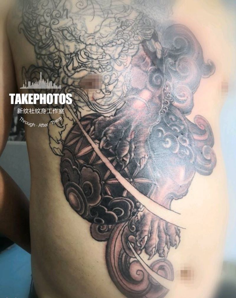 当前位置: 首页 >甘肃省兰州市纹身店-新纹社工作室纹身图案>唐狮子遮盖旧纹身纹身图片_腹部胸部新传统纹身图案