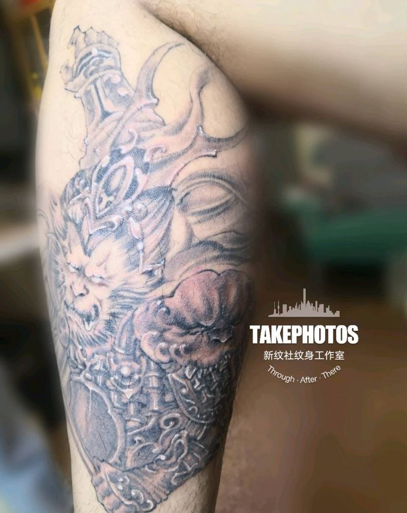 当前位置: 首页 >甘肃省兰州市纹身店-新纹社工作室纹身图案>小腿悟空纹身图片_腿部新传统纹身图案
