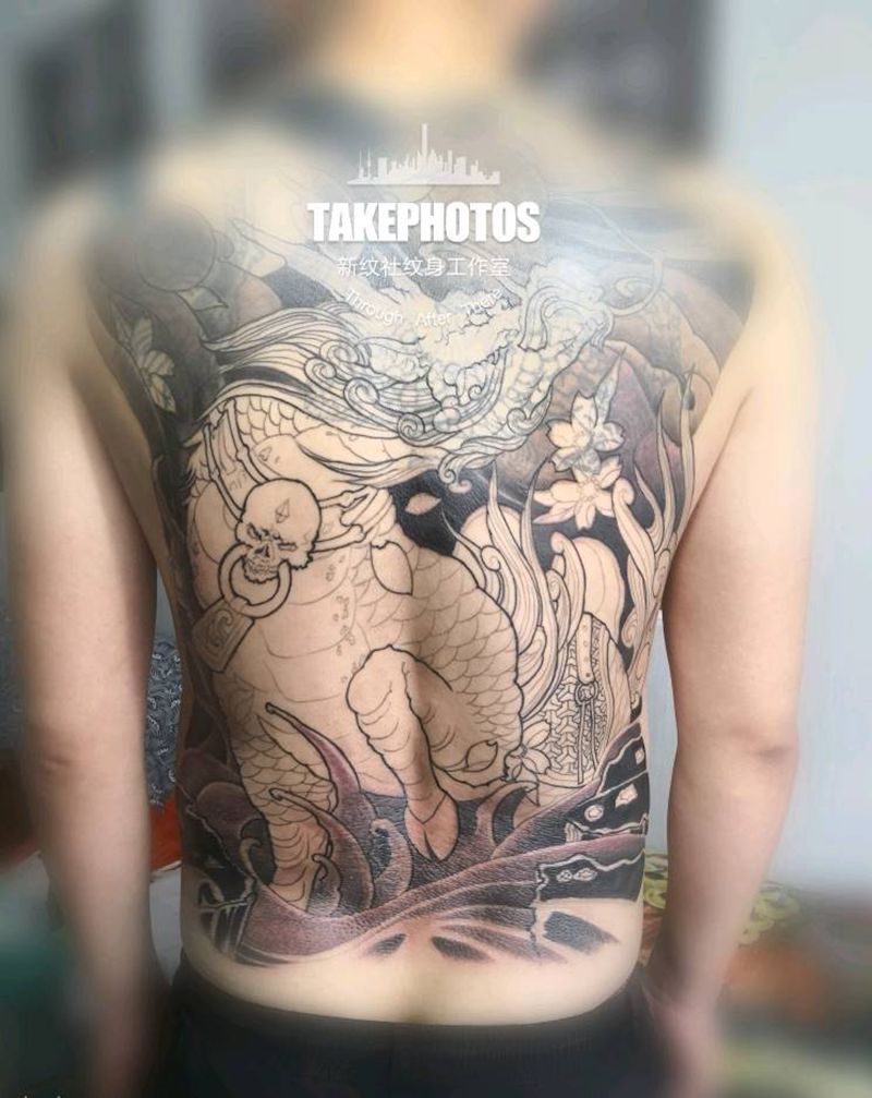 旧纹身遮盖麒麟纹身图片_背部新传统纹身图案