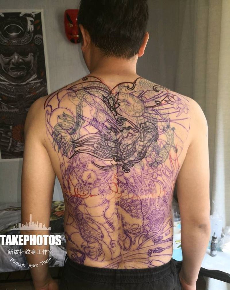 旧纹身遮盖麒麟纹身图片_背部新传统纹身图案
