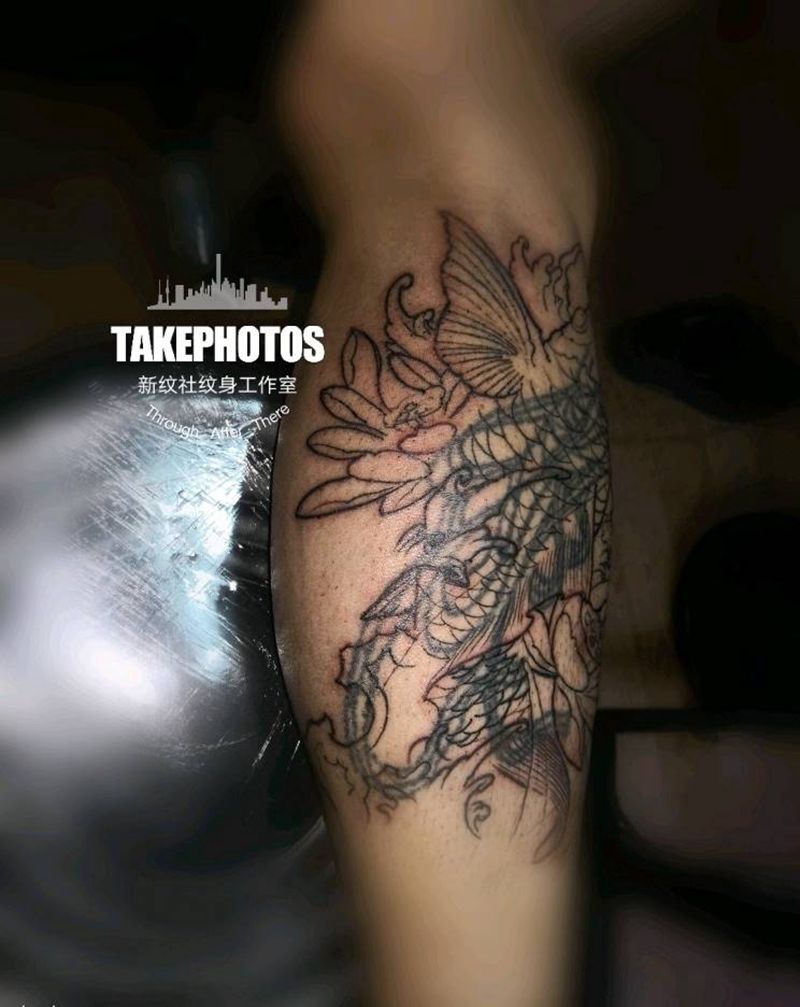 • T网红王老大花腿龙纹身图片_腿部新传统纹身图案