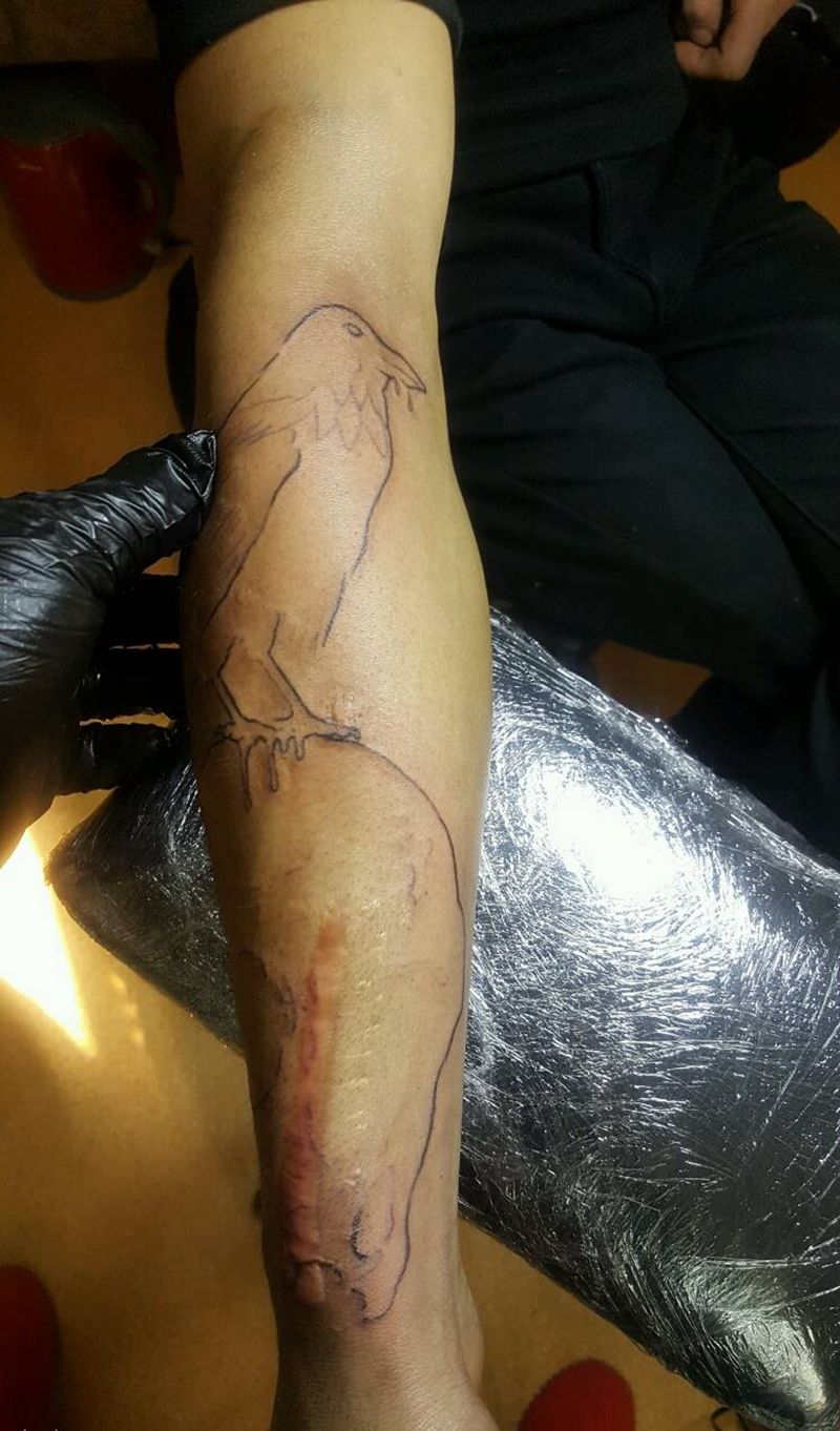 当前位置: 首页 >甘肃省兰州市纹身店-新纹社工作室纹身图案>乌鸦骷髅纹身图片