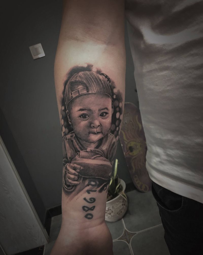 父爱如山纹身图片_手臂欧美写实纹身图案