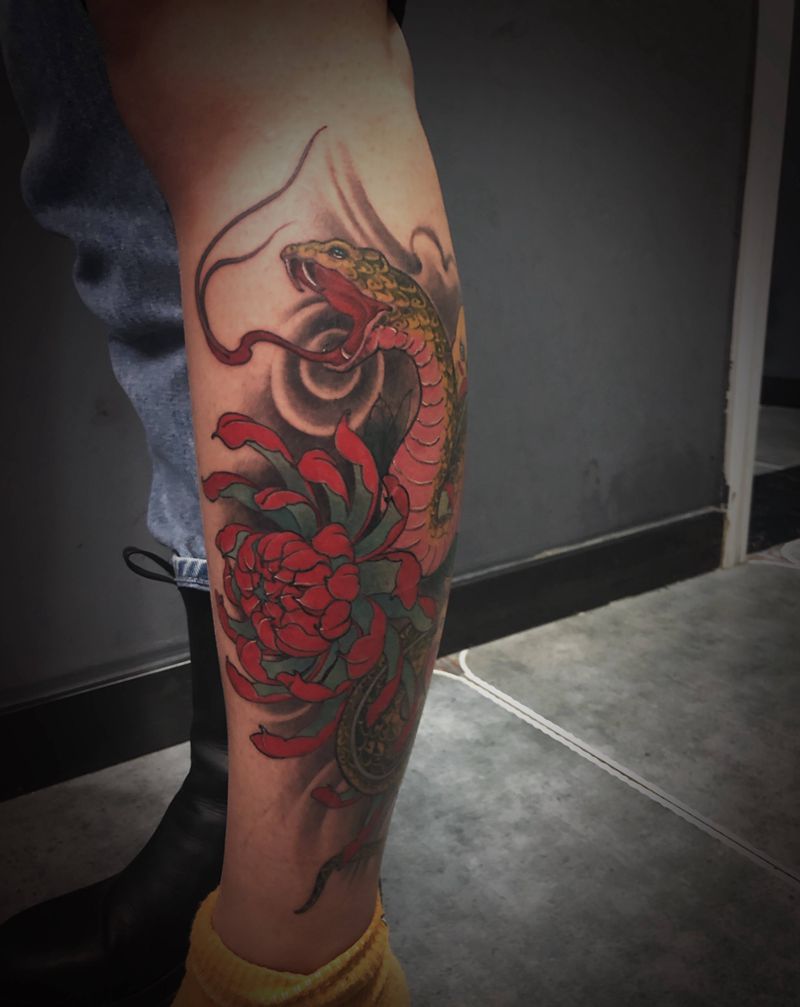 • T网红王老大花腿龙纹身图片_腿部新传统纹身图案