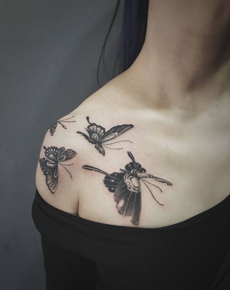 蝴蝶纹身图片_手臂胸部纹身图案