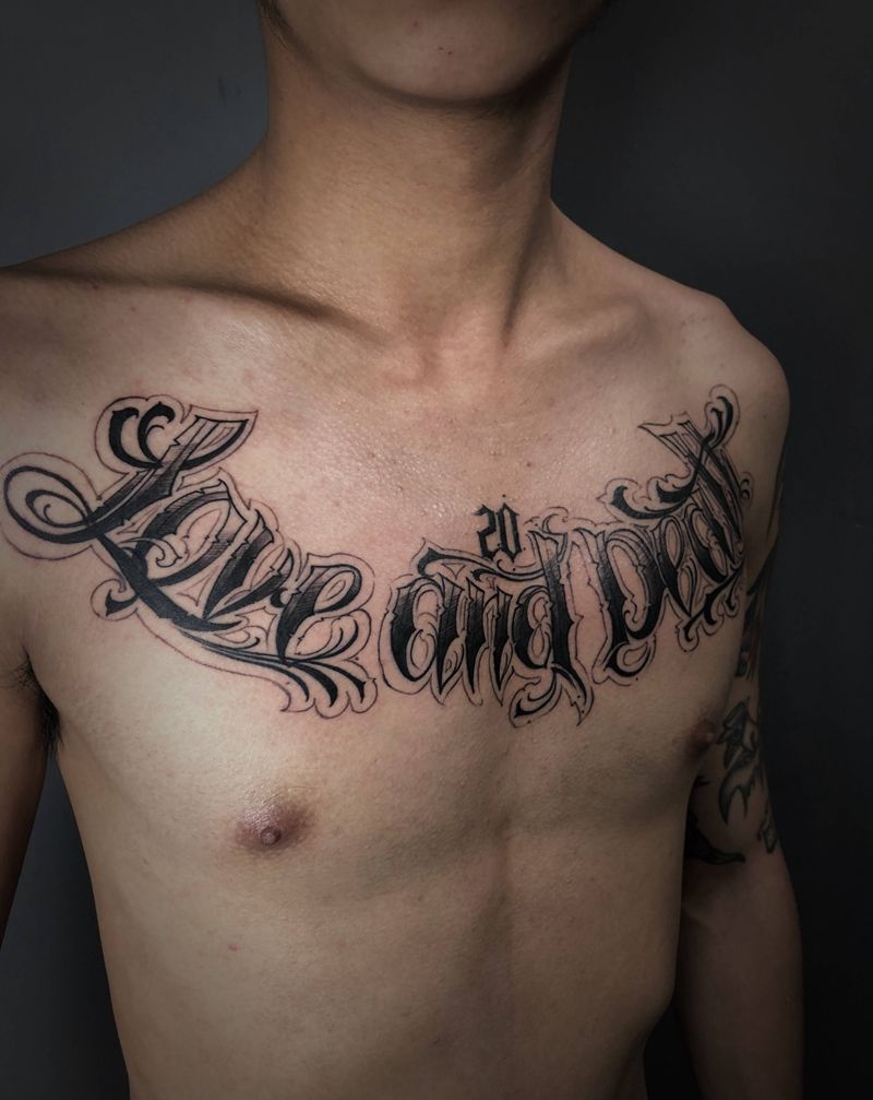 花体英文纹身图片_胸部花体字纹身图案