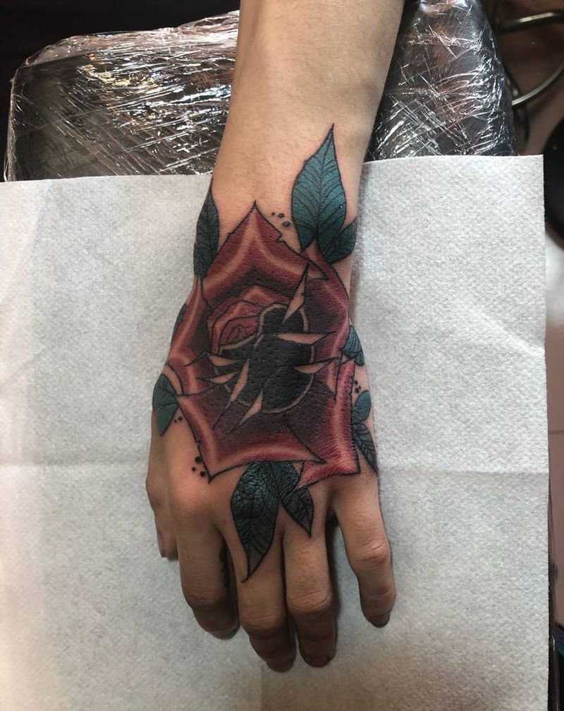 • 手背潮流时尚的玫瑰花眼睛纹身图案
