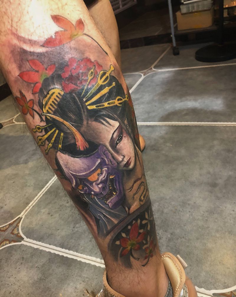 当前位置: 首页 >甘肃省天水市纹身店-天水新刺客纹身纹身图案>艺姬纹身图片_腿部新传统纹身图案