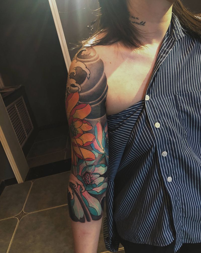 • 女性大花胸纹身_43张霸气漂亮的女性大花胸纹身图案作品