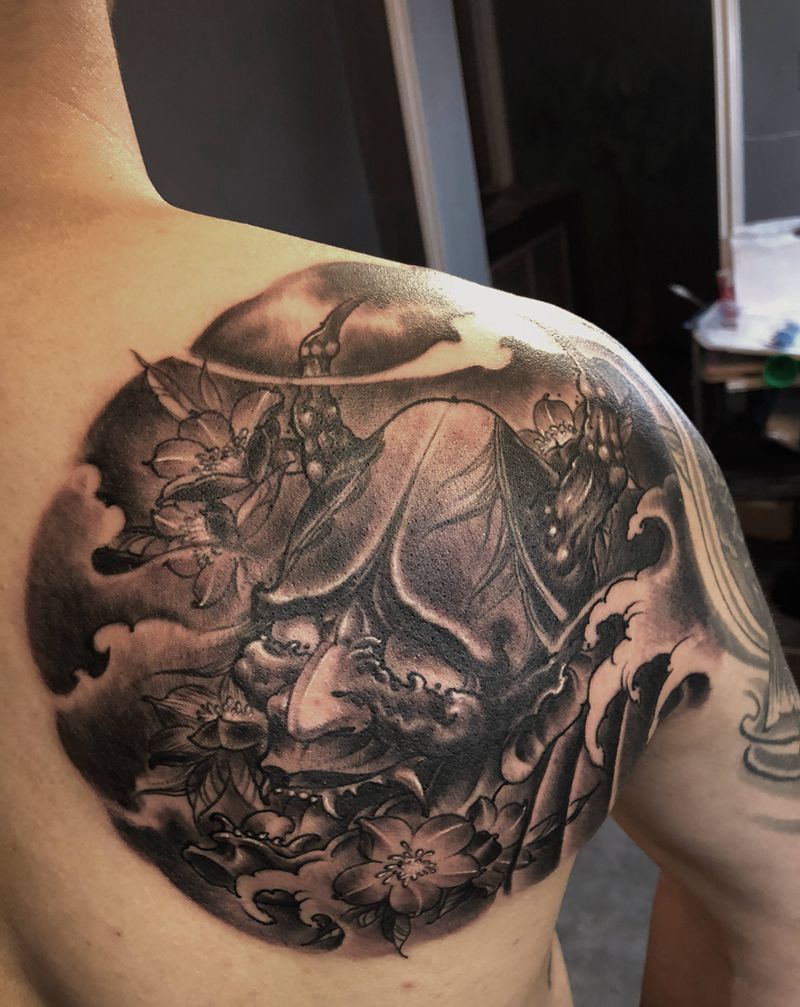 • 纹身吧推荐的披肩图腾半胛纹身图案作品展示