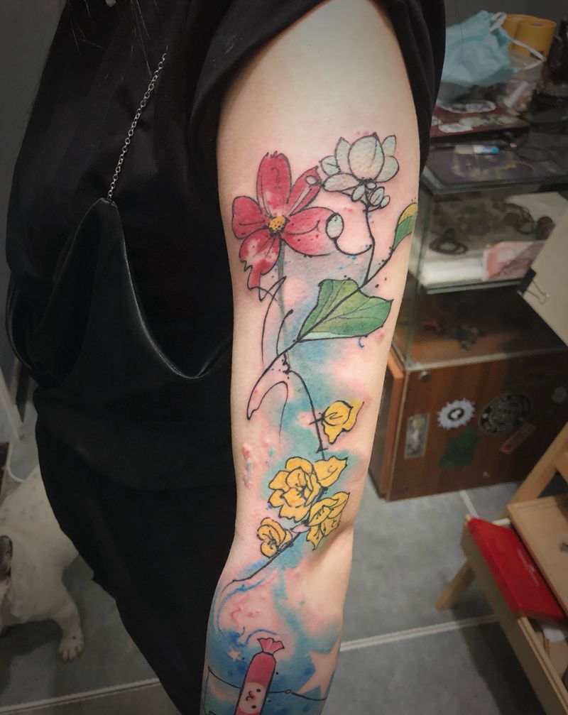 当前位置: 首页 >甘肃省天水市纹身店-天水新刺客纹身纹身图案>水彩遮疤纹身图片_手臂水彩纹身图案