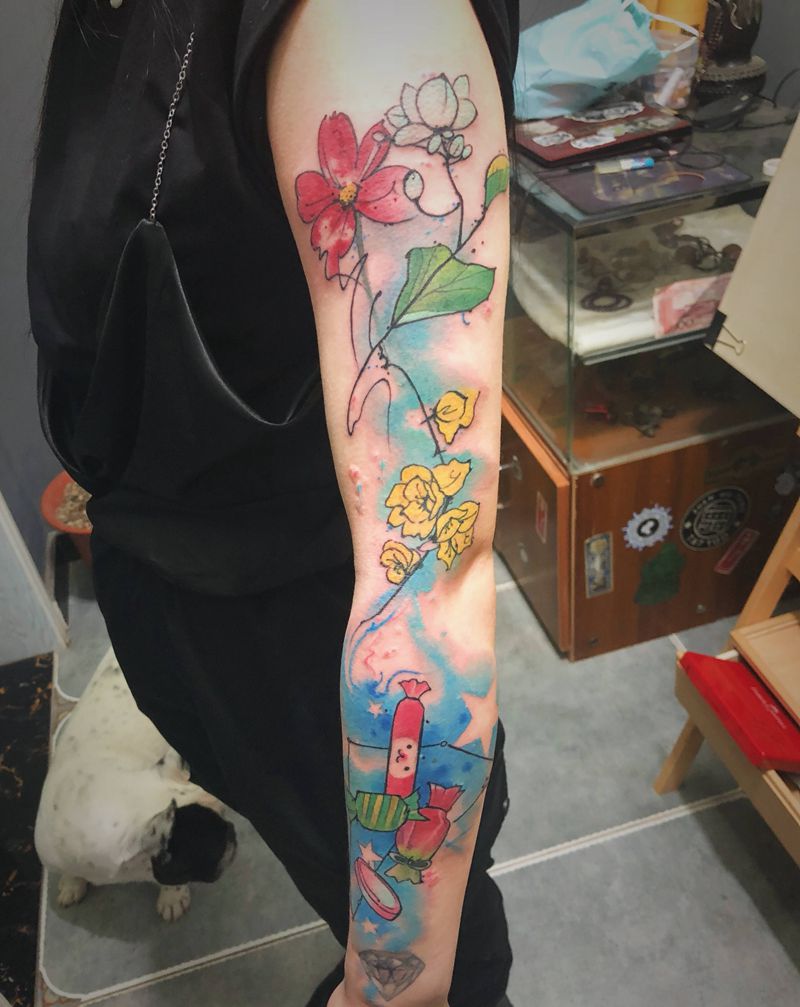 水彩遮疤纹身图片_手臂水彩纹身图案