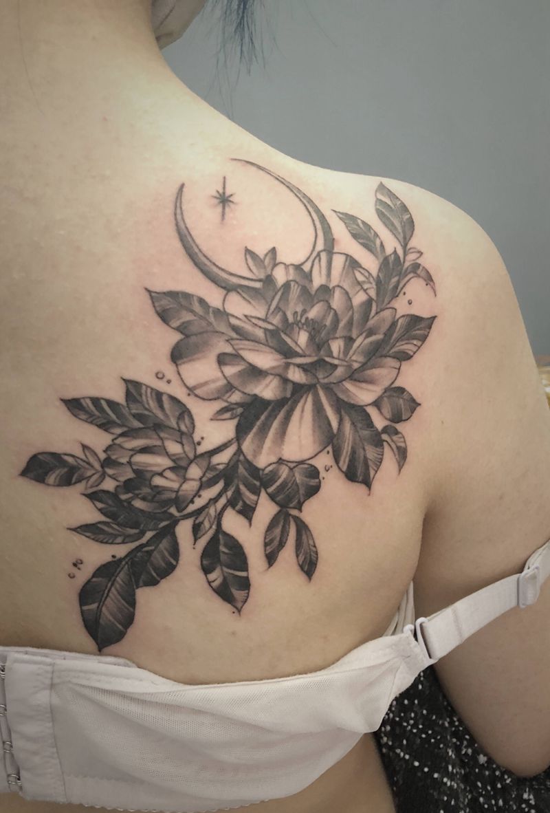 黑灰满背纹身图案
