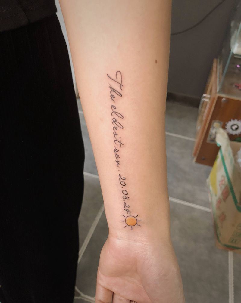 • T家庭图,一家四口生日纪念!纹身图片_手臂纹身图案