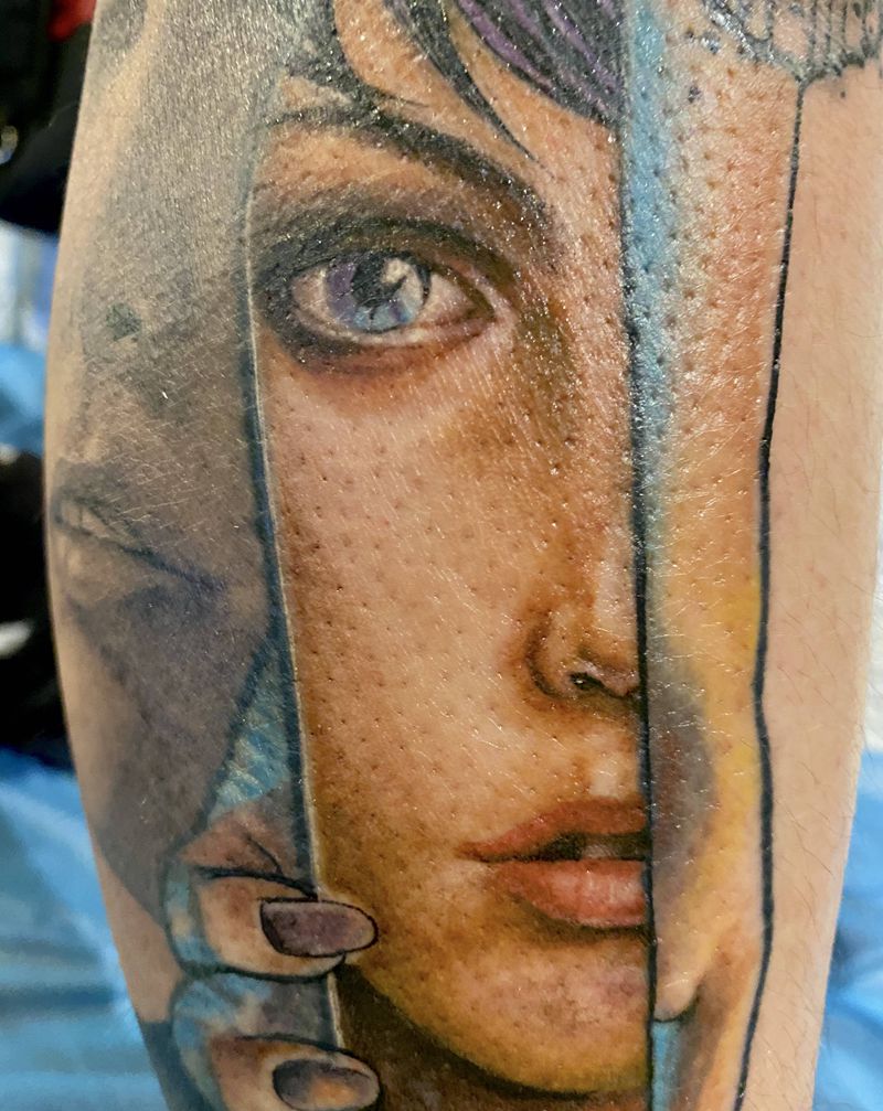 CG肖像纹身图片_腿部欧美写实游戏二次元动漫纹身图案