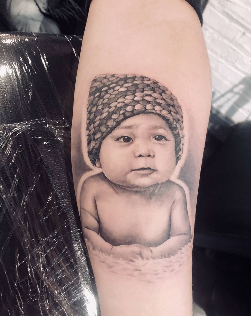 儿童肖像定制纹身图片_手臂欧美写实孩子小孩儿童纹身图案