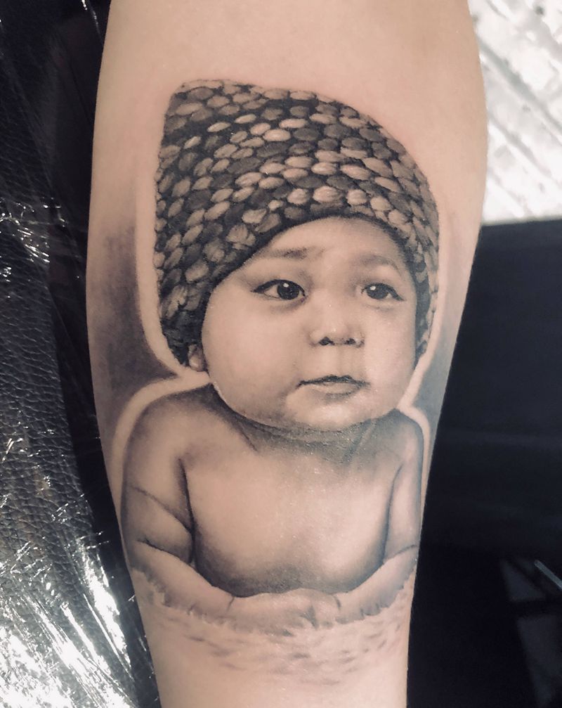 儿童肖像定制纹身图片_手臂欧美写实孩子小孩儿童纹身图案