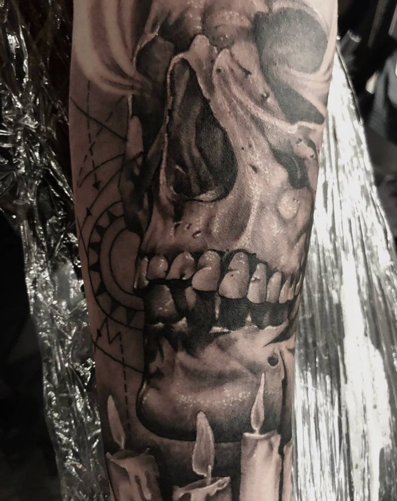 当前位置: 首页 >甘肃省兰州市纹身店-兰州葉雕青艺术工作室纹身图案>凝视纹身图片_手臂欧美写实骷髅眼眼泪纹身图案