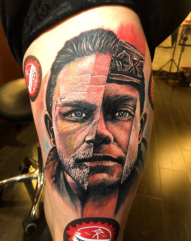 亚瑟王纹身图片_腿部臀部欧美写实亚瑟王战士纹身图案