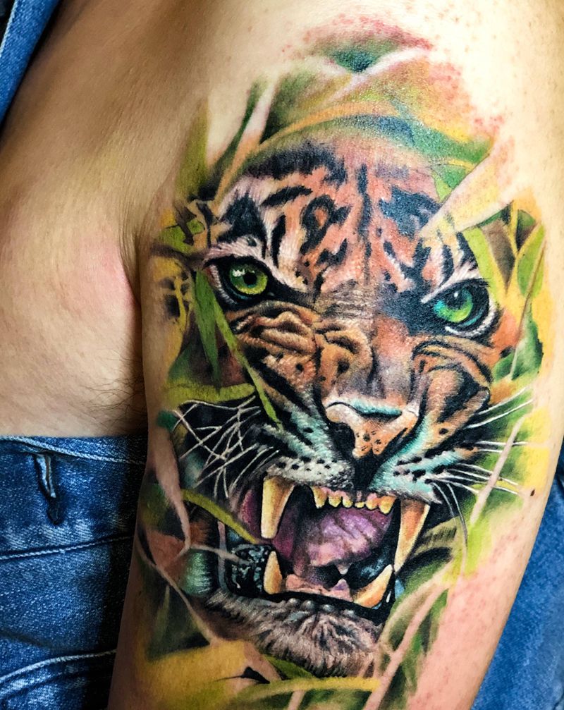 当前位置: 首页 >甘肃省兰州市纹身店-兰州葉雕青艺术工作室纹身图案>大脑斧纹身图片_手臂欧美写实老虎彩色写实纹身图案