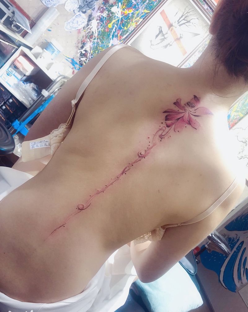 后背花纹身图片_背部水彩水墨纹身图案