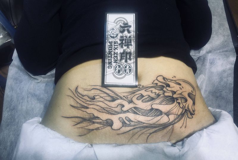 当前位置: 首页 >甘肃省兰州市纹身店-六禅印刺青纹身工作室纹身图案>水母纹身图片_腹部New School几何纹身图案