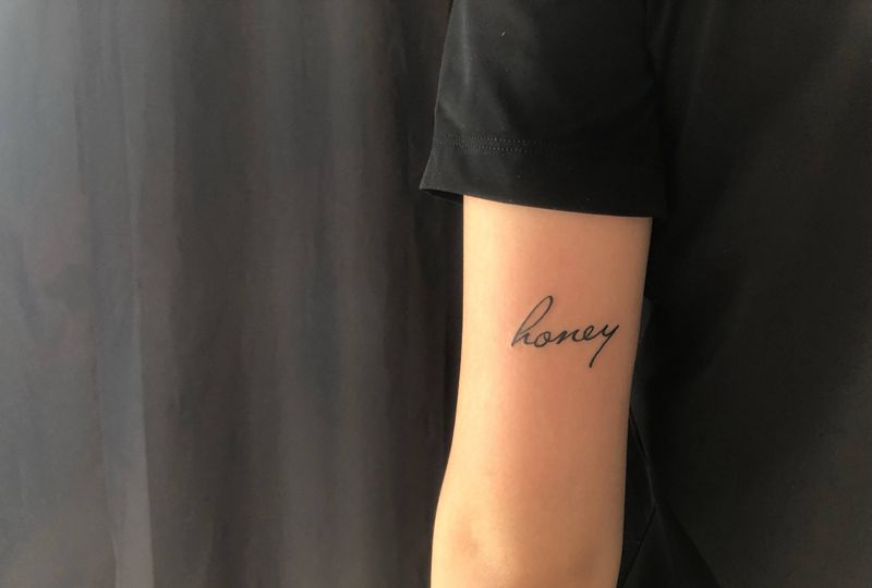 当前位置: 首页 >甘肃省兰州市纹身店-六禅印刺青纹身工作室纹身图案>Honey纹身图片_手臂花体字纹身图案