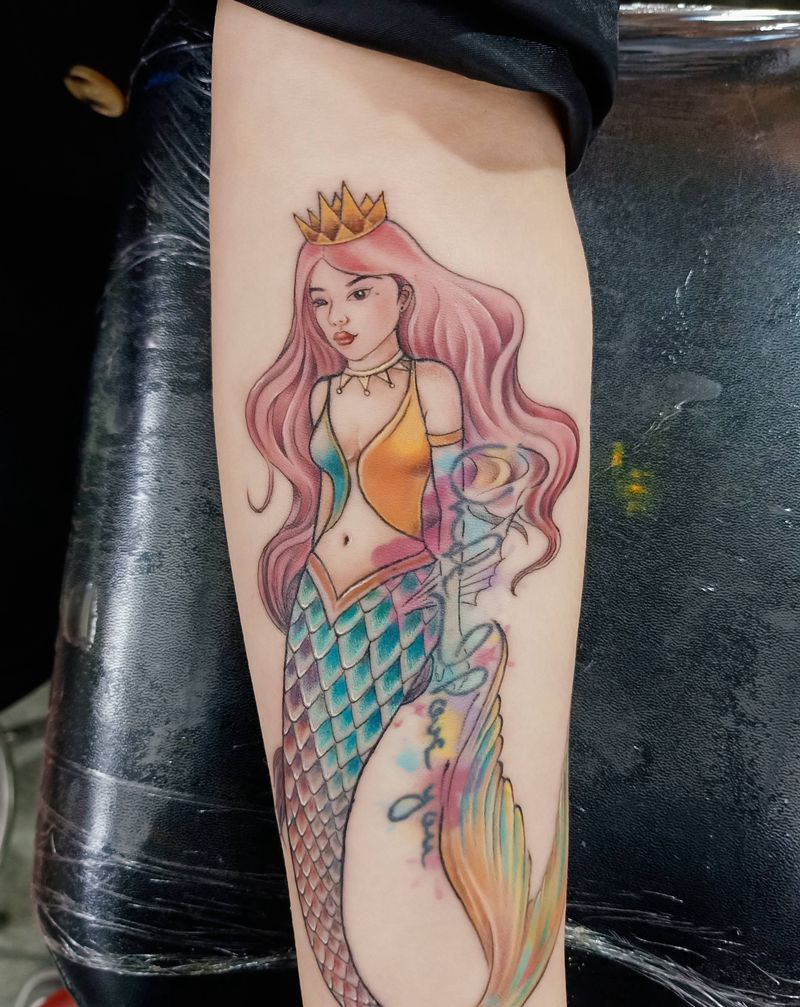当前位置: 首页 >甘肃省天水市纹身店-针艺轩纹身纹身图案>美人鱼纹身图片_手臂纹身图案