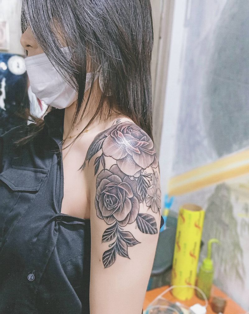 • 女性大花胸纹身_43张霸气漂亮的女性大花胸纹身图案作品