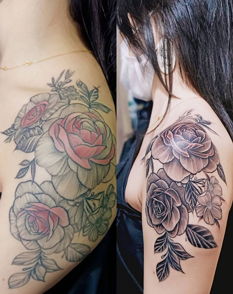 • 女性大花胸纹身_43张霸气漂亮的女性大花胸纹身图案作品