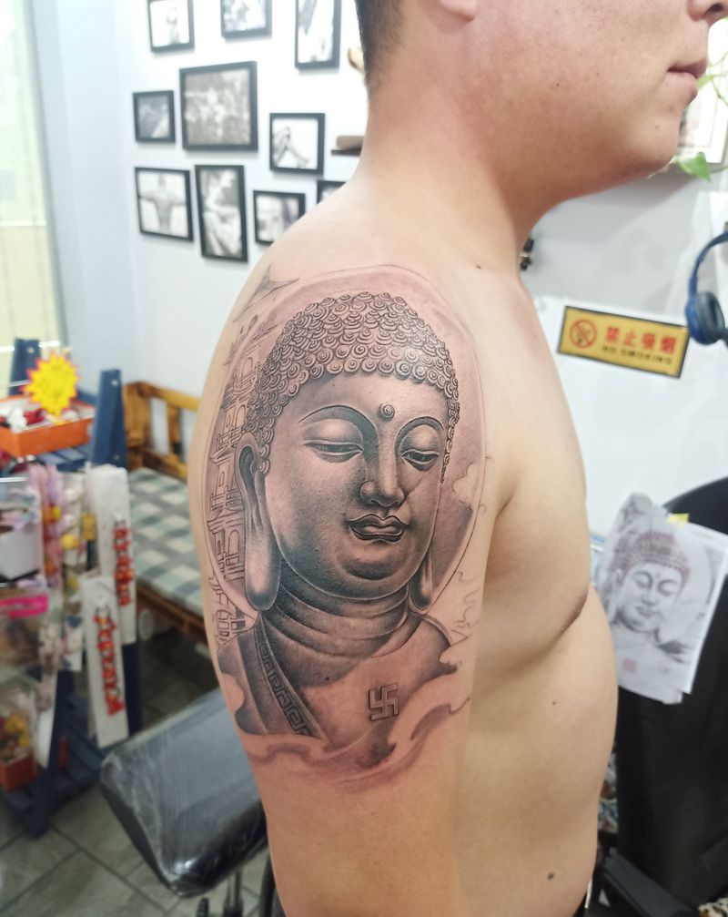 当前位置: 首页 >甘肃省天水市纹身店-针艺轩纹身纹身图案>阿弥陀佛纹身图片_手臂纹身图案