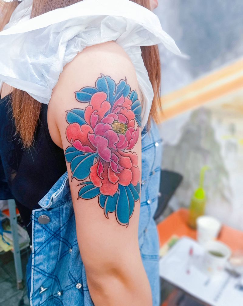 牡丹遮盖纹身图片_手臂纹身图案