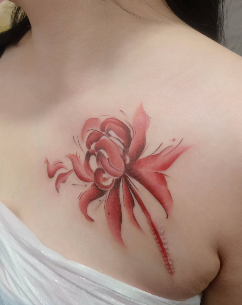 彼岸花纹身图片_胸部纹身图案